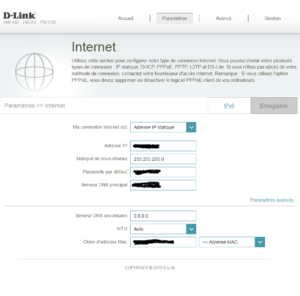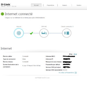 - en utilisant le DIR-842 comme passerelle réseau avec une connexion Wifi 2.4 GHz