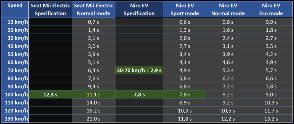 - la Niro EV 2022 ne démarre pas plus fort en ville que la Seat Mii Electric.