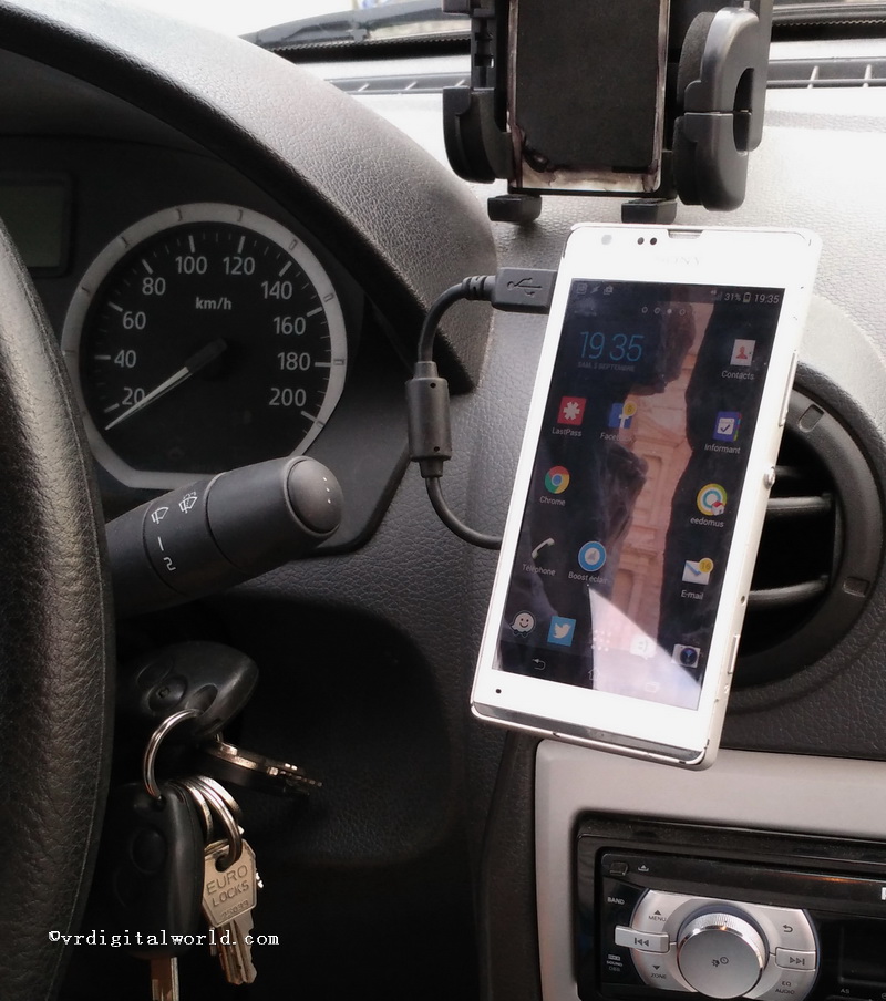 Par contre l’utilisation de l’écran tactile est peu aisé lorsque le support n’est pas au dessus du tableau de bord. On ne peut pas faire reposer sa main, et entre la main qui bouge d’un sens et le smartphone qui vibre légèrement de l’autre, il n’est pas facile d’utiliser le clavier tactile sur l’écran. Vous me répondrez que c’est interdit de réaliser ce genre d’action en roulant et vous aurez raison 🙂 !